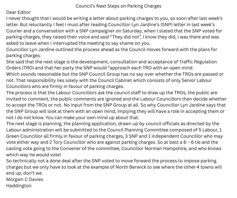 NO PARKING CHARGES IN HADDINGTON! LOOK OUT FOR OUR PUBLIC INFORMATION SESSIONS